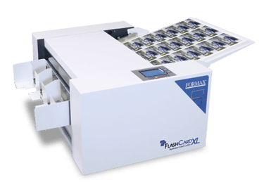 FlashCard Application Videos 3.5" Applications 7" Applications 8" Applications FlashCard Templates Working with FlashCard Templates Video The Formax FlashCard Business Card Cutter is a high-quality, economical solution for short-run production of full-bleed business cards postcards, photos, and more. Its rugged, compact design allows users to cut cards on demand, up to 144 business cards per minute. Featuring an intuitive LCD display, it’s easy for operators to use pre-programmed job settings or create and save their own custom cuts. The FlashCard...