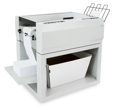 The FD 676 High-Volume Industrial Burster processes large bursting jobs at speeds up to 500 feet per minute while slitting, separating and stacking the forms. It is capable of continuous operation, 7 days a week, processing forms up to 17″ long. Standard features include slitters, tractor feed, safety interlocks, a stand, and a conveyor unit.