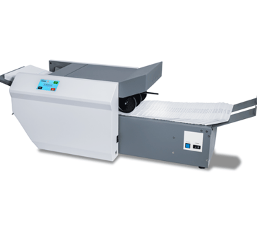 Standard features include easy-set fold plates with fine-tuning adjustments, heavy-duty steel construction, insulated covers for noise reduction, and a drop-in three-tire feed system, all in a compact, modern desktop design. Fold plates are pre-marked for standard folds in 11” and 14” form sizes, and can be easily adjusted for custom folds. Fold types include Z, C, Uneven Z and C, Half and custom folds.