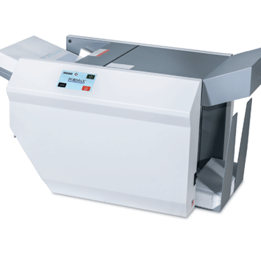 The FD 2036 AutoSeal® is a user-friendly high-volume solution for processing one-piece pressure sensitive mailers. The color touchscreen control panel uses internationally-recognized symbols in place of text, and includes a six-digit resettable counter. With a speed of up to 11,000 forms per hour, hopper capacity of up to 350 forms, and the ability to process forms up to 14” in length, the FD 2036 enables operators to complete daily processing jobs with ease.