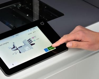 Enhanced innovations include a 7” full-color touchscreen control panel with graphical interface, a locking thumbwheel adjustment for the envelope side guides, and a paper path window which allows users to see the insert area without stopping or opening the inserter. Standard features include a high-capacity vertical output stacker which holds up to 500 finished envelopes, automatic paper and envelope presence sensors with graphic indicators on the control panel, and a large top-loading envelope hopper with a capacity of up to 325 envelopes.