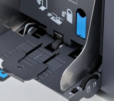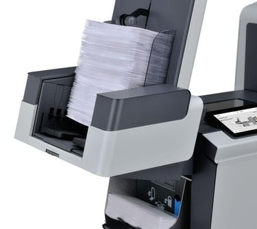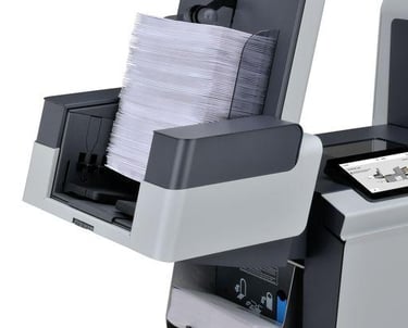 The powerful and versatile 6308 Series has the capacity to fold and insert up to 10 pages in half-fold mode. It also has the ability to process documents of various lengths and thicknesses at the same time, at speeds of up to 3,800 per hour and up to 40,000 pieces per month.