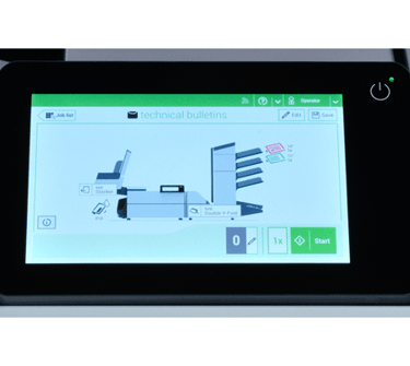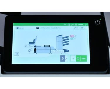 User-friendly features include the 7” color touchscreen control panel with graphics-based display and automatic paper and envelope presence sensors, a vertical output stacker which holds up to 500 filled envelopes, and a top-loading envelope hopper with a capacity of up to 325 envelopes which can be refilled on-the-fly. AutoSet allows operators to load envelopes and documents, then adjusts all settings automatically with the ability to store up to 50 programmed jobs for instant recall.