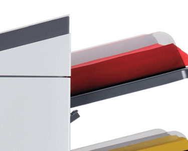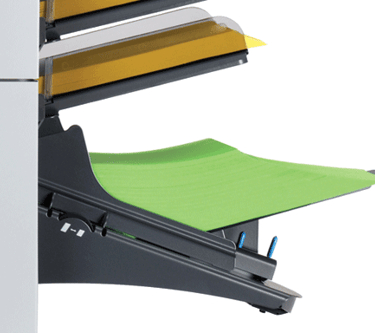 Its powerful folding capacity folds up to 10 sheets (half fold) or up to 8 sheets (tri-fold) at one time, plus Cascade Mode allows users to link feeders for continuous operation: when one feeder empties, another takes over.