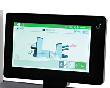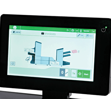 User-friendly features include the 10” color touchscreen control panel with graphics-based display and automatic paper and envelope presence sensors, a vertical output stacker which holds up to 500 filled envelopes, and a top-loading envelope hopper with a capacity of up to 500 envelopes which can be refilled on-the-fly. AutoSet allows operators to load envelopes and documents, then adjusts all settings automatically with the ability to store up to 50 programmed jobs for instant recall.