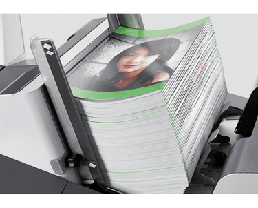 Its robust folding system folds up to 8 sheets at a time, with the power to process up to 7,000 envelopes per hour, and up to 300,000 finished pieces per month. When processing flats, the 7700 Series can insert sets of up to 80 sheets and/or up to 10mm in thickness with the Thick Set upgrade license. The top-loading envelope hopper holds up to 800 #10 envelopes or 500 10” x 13” flats, in landscape orientation for higher processing speeds.