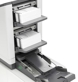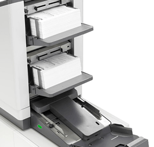 The 7700 Series is customizable from the inserter base up. Choose from one of five Tower Feeder-Folders, non-intelligent and intelligent High Capacity Insert Feeders, and in-line Feeder-Folders to meet the exact specifications for your mailings. The modular design enables up to 11 feeders to be combined based on the module configurations. In addition, the 7700 Series can be equipped to read OMR, BCR, 2D, and QR, with codes located anywhere on the page, even reading barcodes on the reverse side of the document!