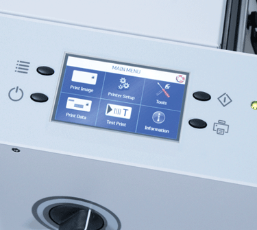 Its user-friendly color touchscreen includes an adjustable backlight, and provides full control of functions, including the ability to store and recall common print jobs, up to 16GB. The user interface allows users to preview jobs, change output speed, access troubleshooting tools, and even estimate the cost of a job before sending it to print.