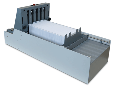 The V-Stack36i vertical stacker is designed to work with a variety of Formax pressure sealers and tabletop folders. Unlike a traditional outfeed conveyor, it stacks forms vertically, providing a neat stack that is easier to unload for further processing.